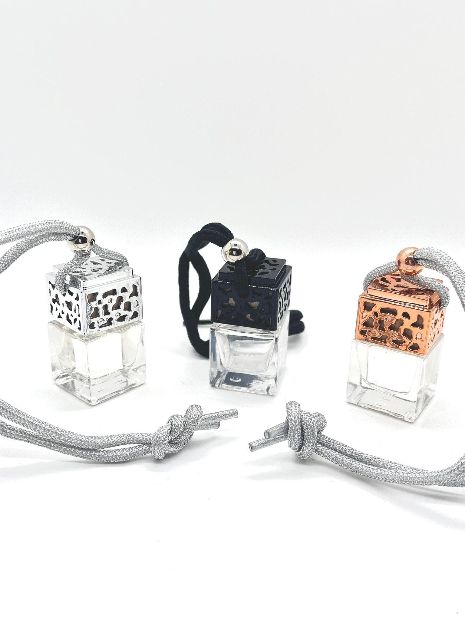 This listing is for one car diffuser that can be used by men or women. The car diffuser is a versatile car accessory that can be hung and used as a rear view mirror accessory to scent the air in a car. This air freshener can also be used in an office, in a closet, or most any small space where the air needs to be freshened. In addition, this car perfume is available in several car scents and is available in the colors of silver, black, or rose gold. The style/design of this car accessory is sleek, elegant, glass, and square shaped with a screw top lid. The volume of the car diffuser is 7 ml.