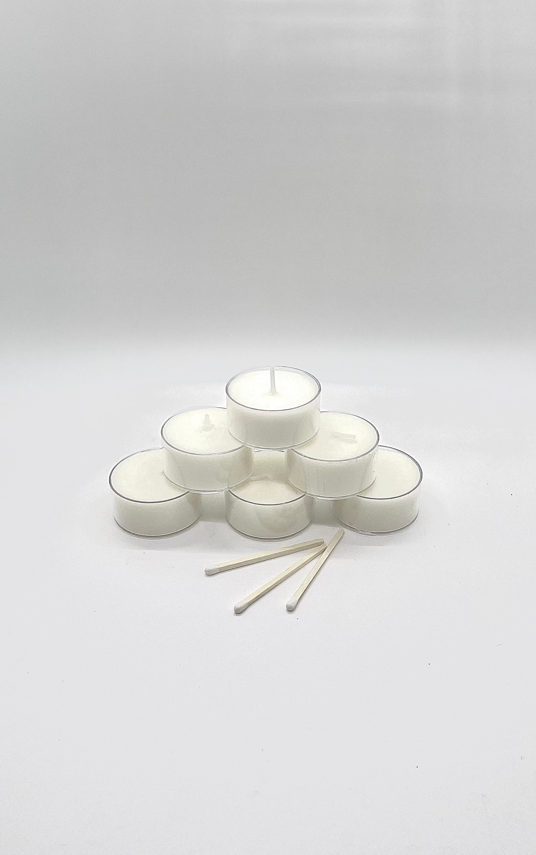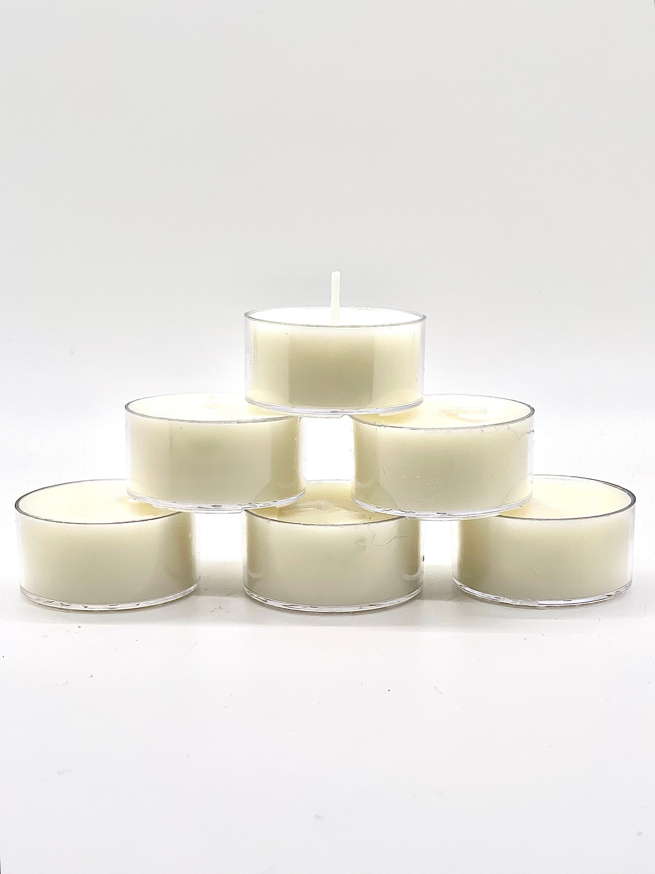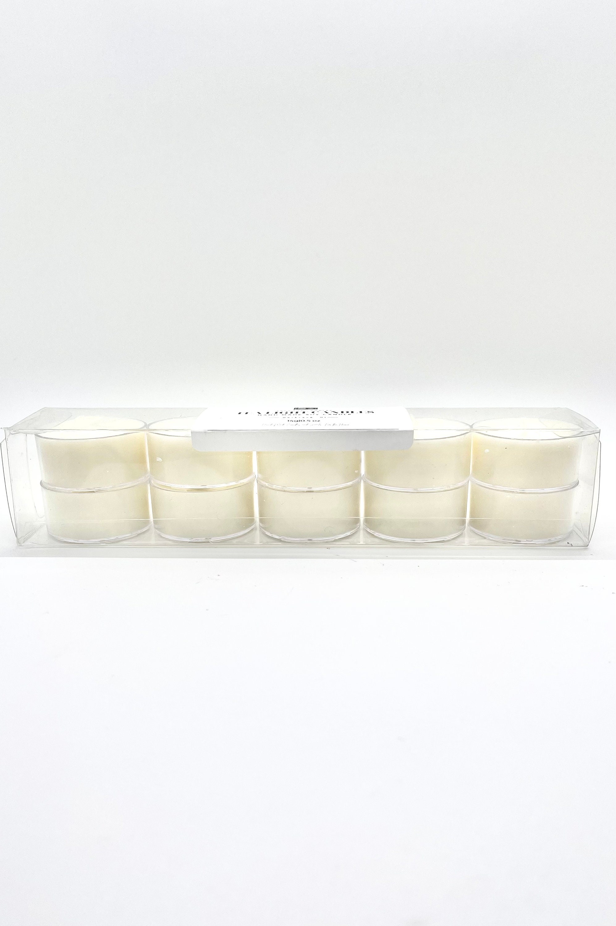This listing is for one package of white unscented soy tealight candles. These homemade candles come in a plastic clear container (heat resistant) in a quantity of 10, 30, or 60 small candles. These mini candles are multi purpose and can be used for decorative purposes such as home decor, weddings, candle favors, or to set the mood to create an ambience for most any occasion. The tea light candles are white to opaque white in color. The size of the soy tea lights are 14g each and burn time is 4-5 hours.