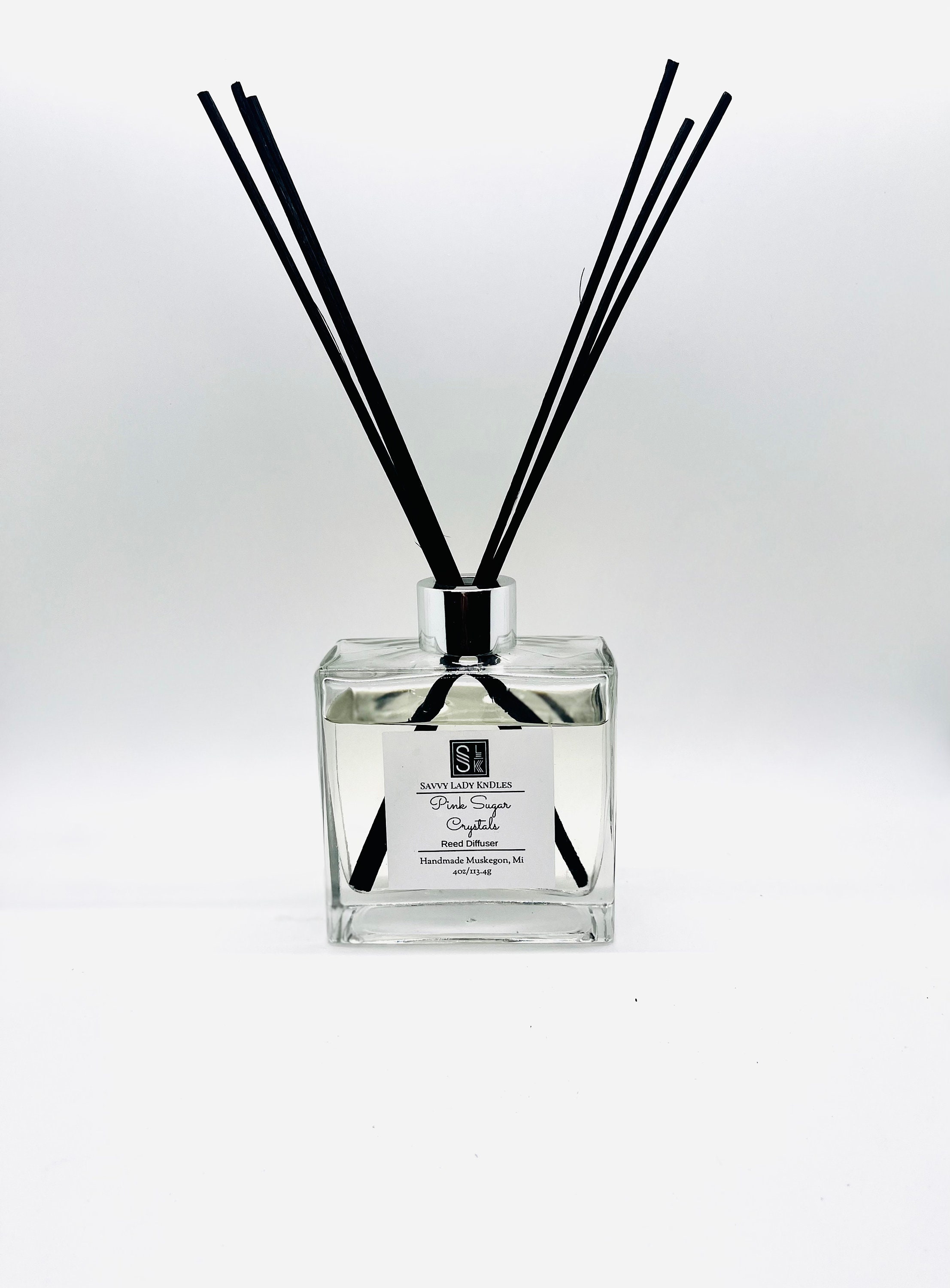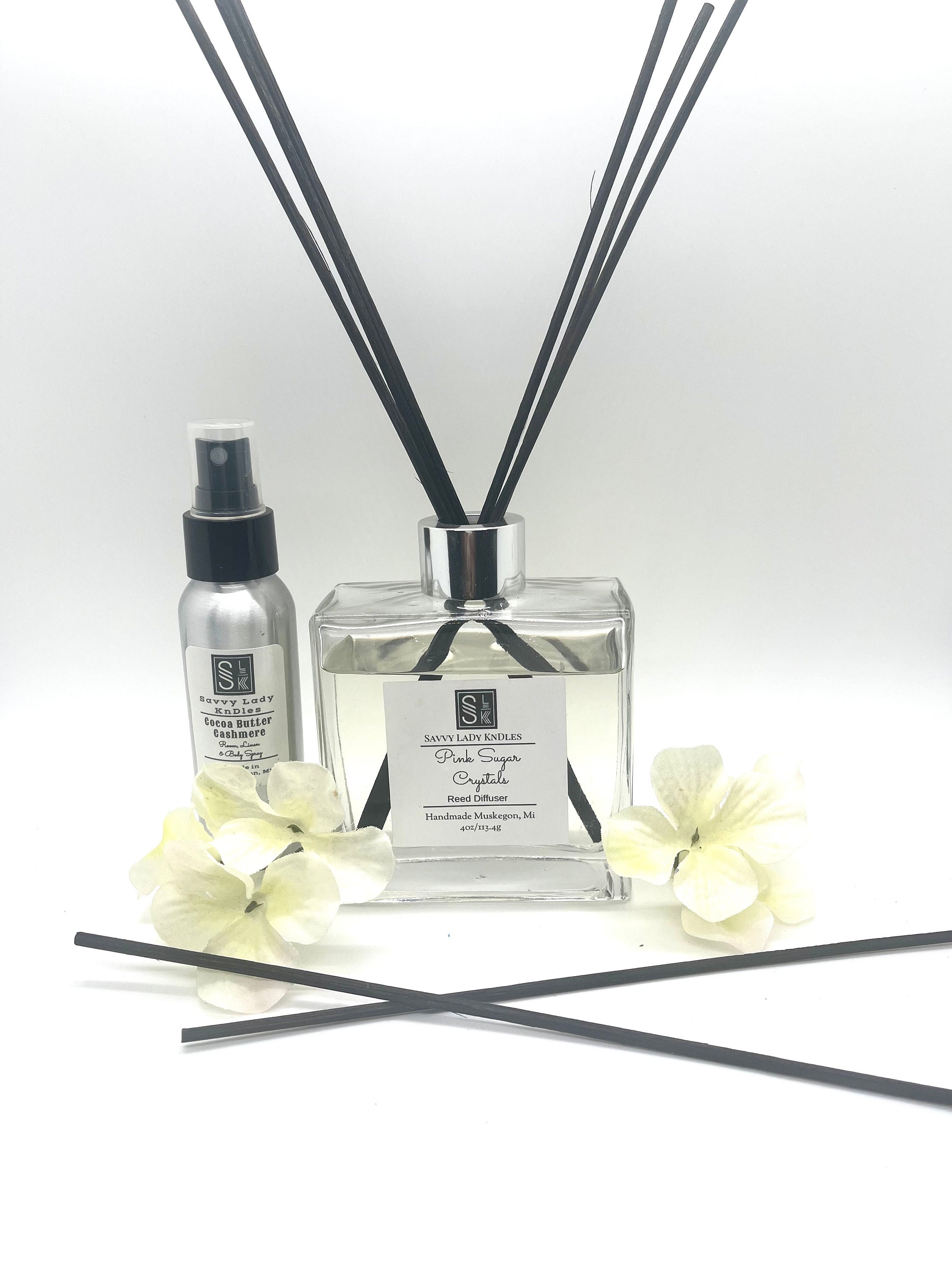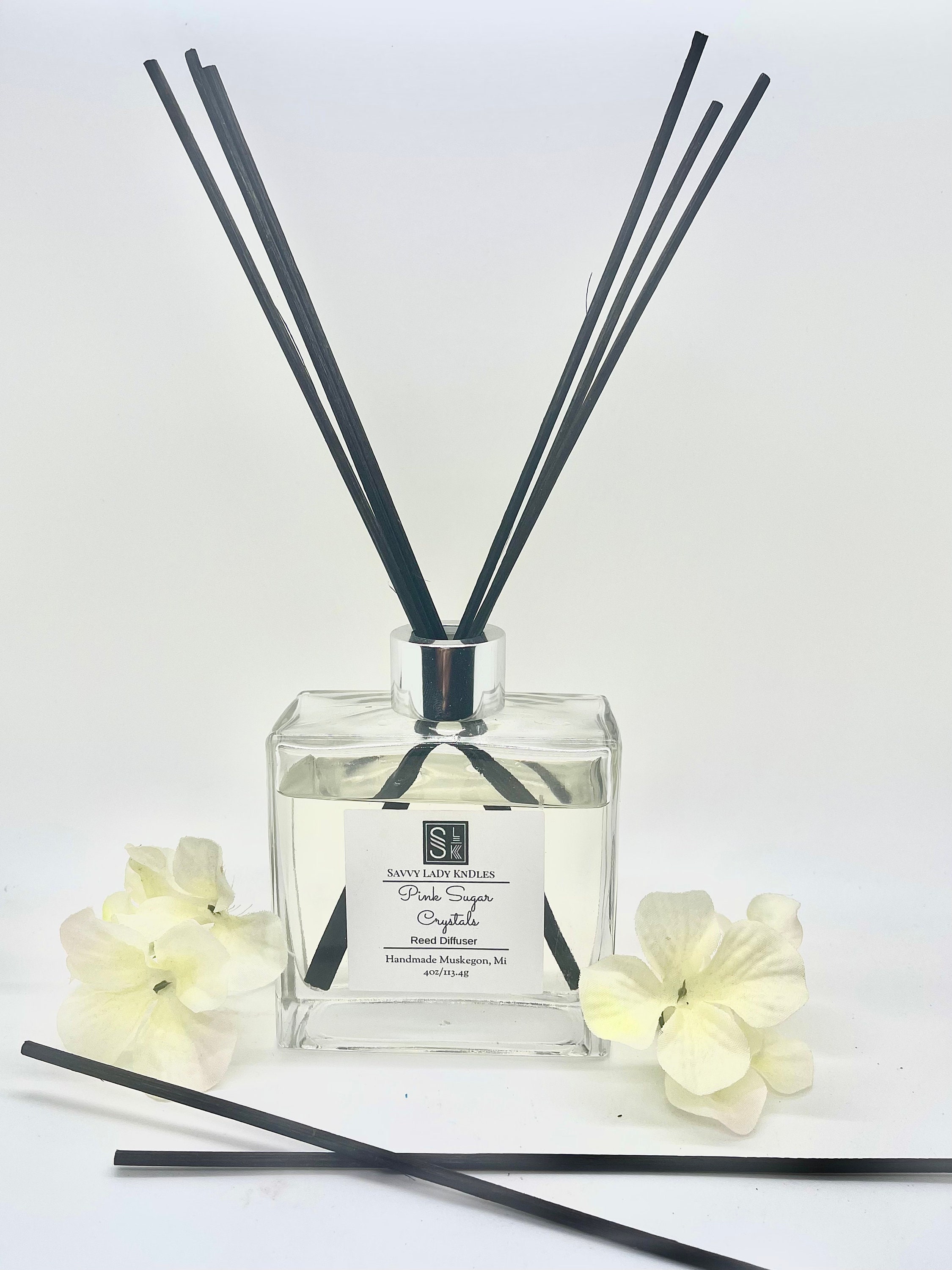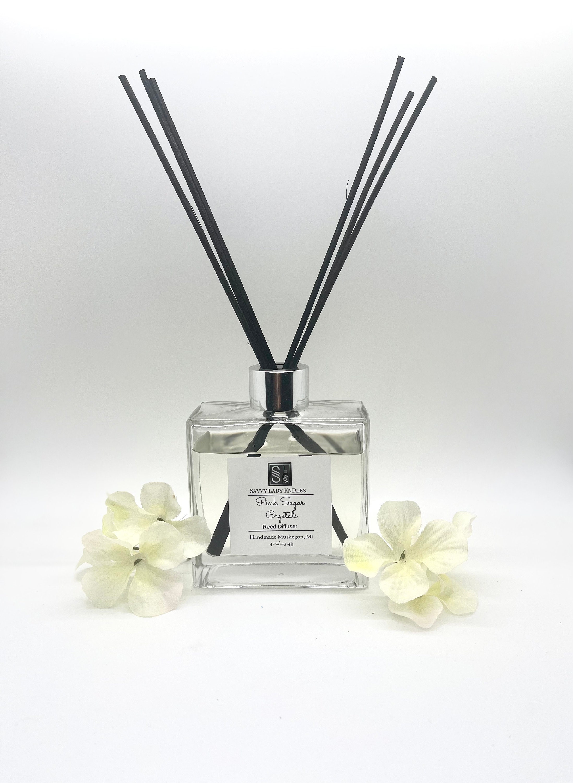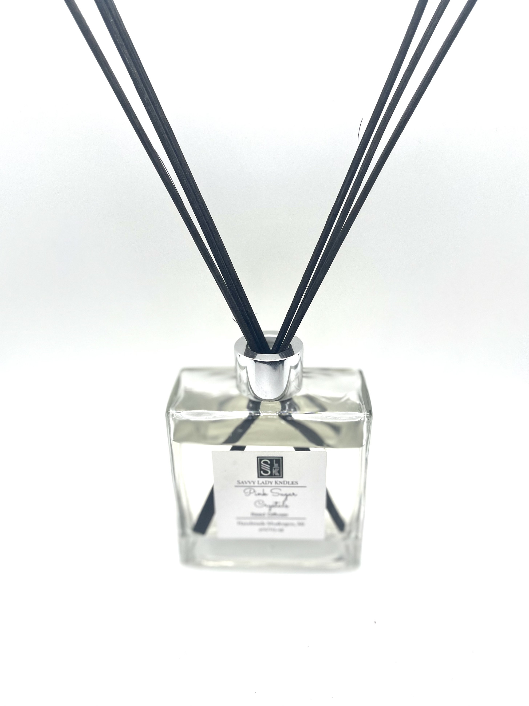 This listing is for one mid to large size reed diffuser. Using of reed diffusers can serves as an alternate flame free way of scenting one’s home versus other methods that include burning incense or candles. This elegant oil diffuser comes in a square thick glass container with a plastic stopper, silver collar, and silver screw twist top. The air freshener also comes with eight rattan reed diffuser sticks for dispersing the aroma of the reed diffuser fragrance oil mixture through out your home room or office and is available in a variety of scents.