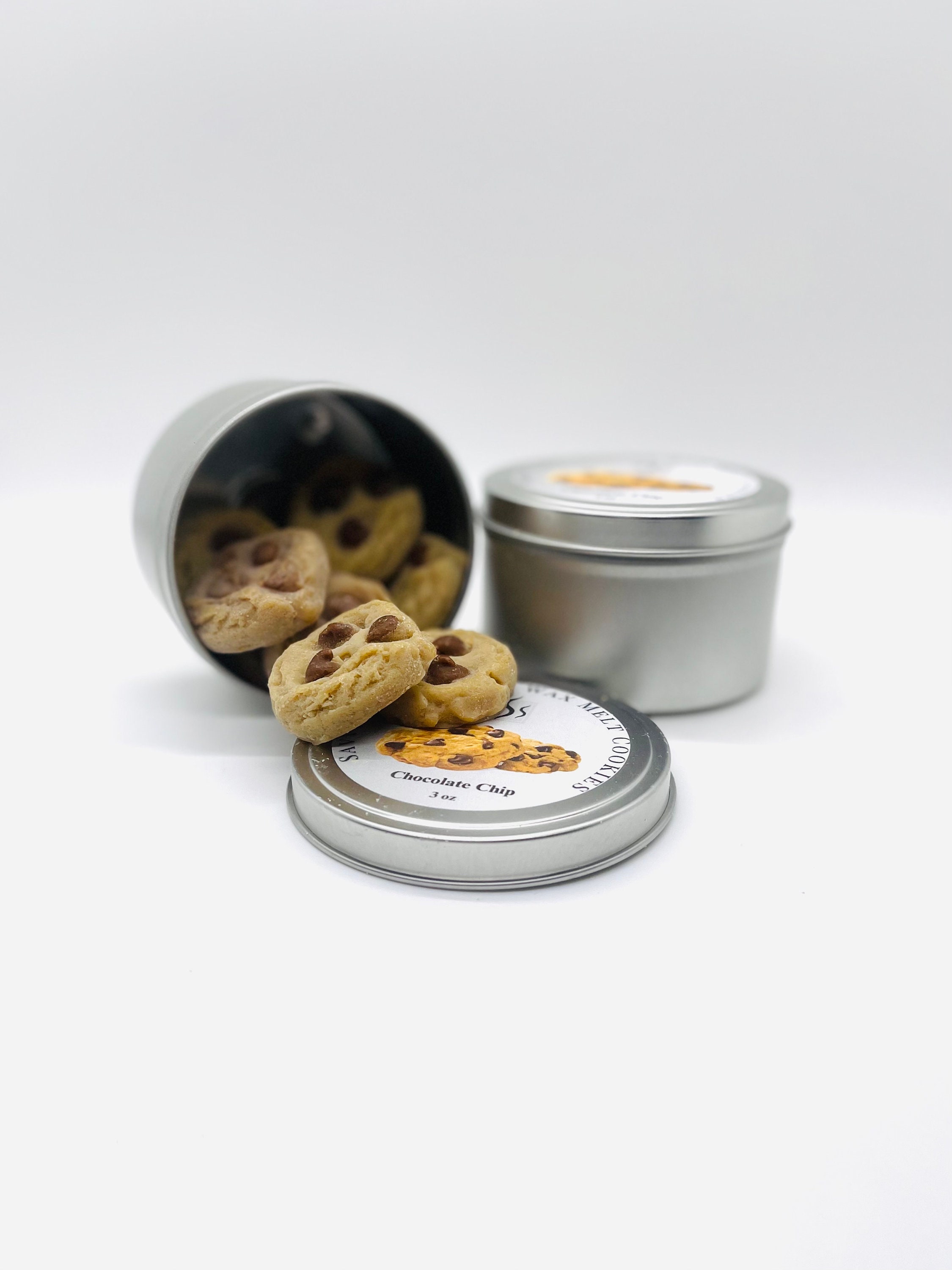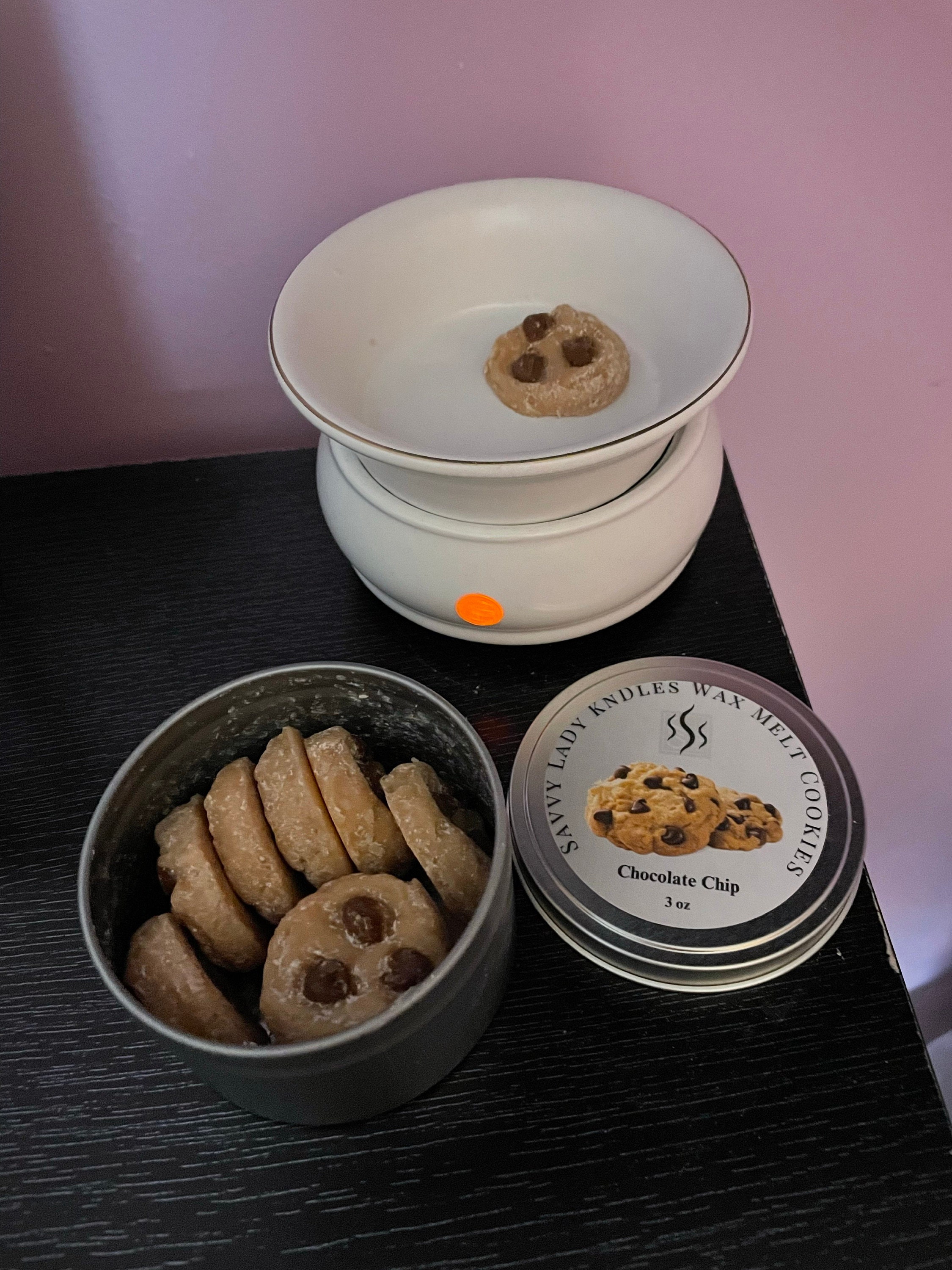 Wax Melts for wax warmer. This listing is for one 8 oz tin of mini Chocolate Chip Wax Melt Cookies. Whether you’re looking to freshen up your kitchen, bedroom, or sitting area, our cookie wax melts are sure to please. Indulge in the mouth-watering aroma of freshly baked chocolate chip cookies with our hand poured soy wax melt cookies. Made with the finest products, our bakery wax melts are perfect for adding the smell of sweet chocolate aroma to any room in your home.