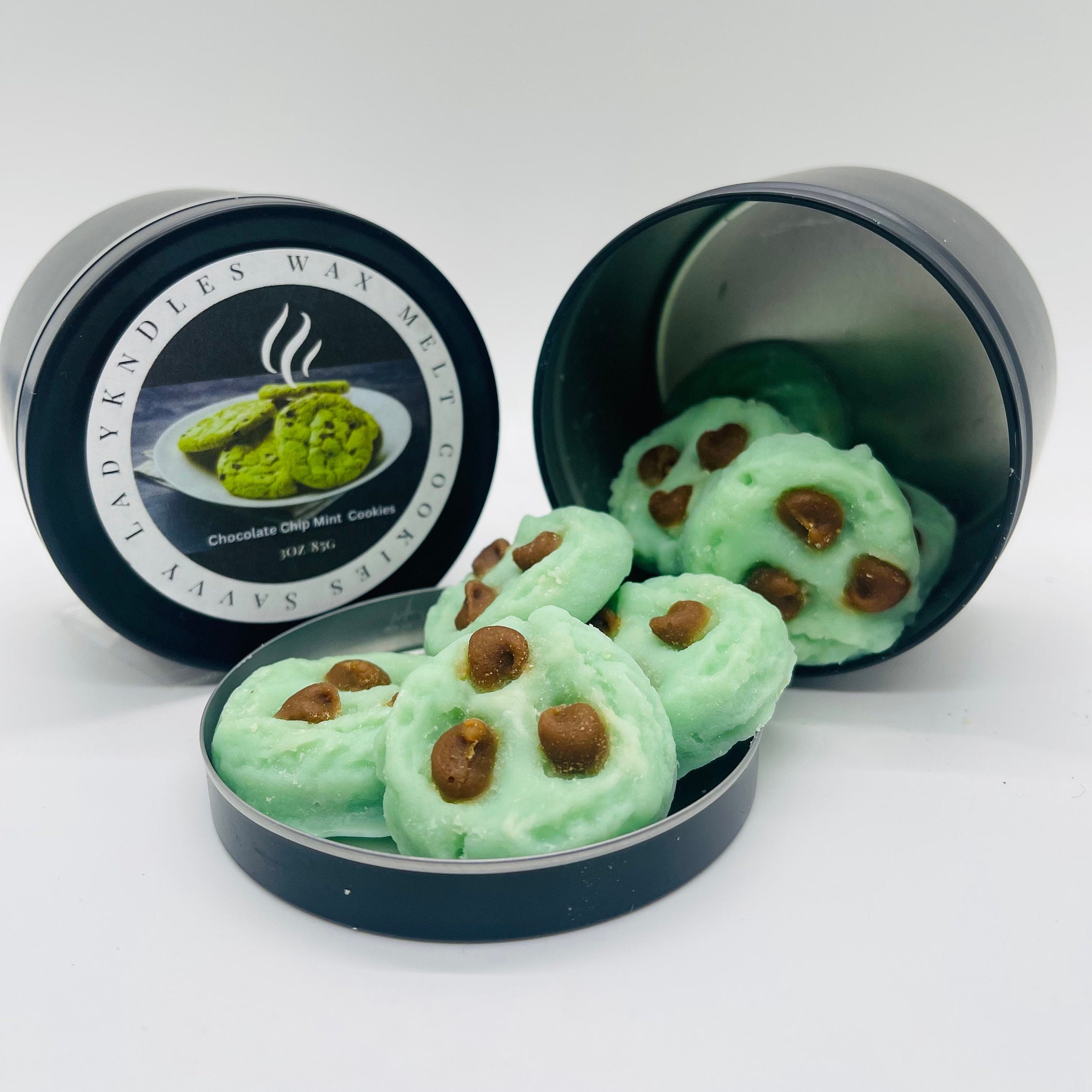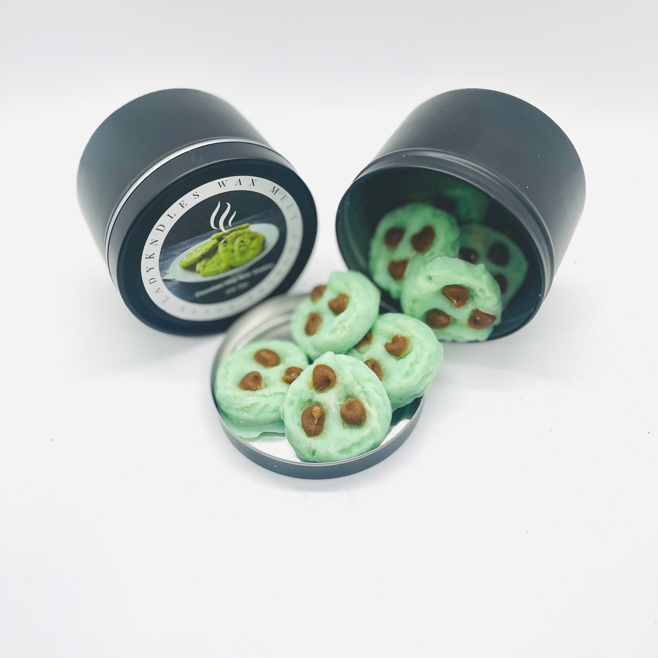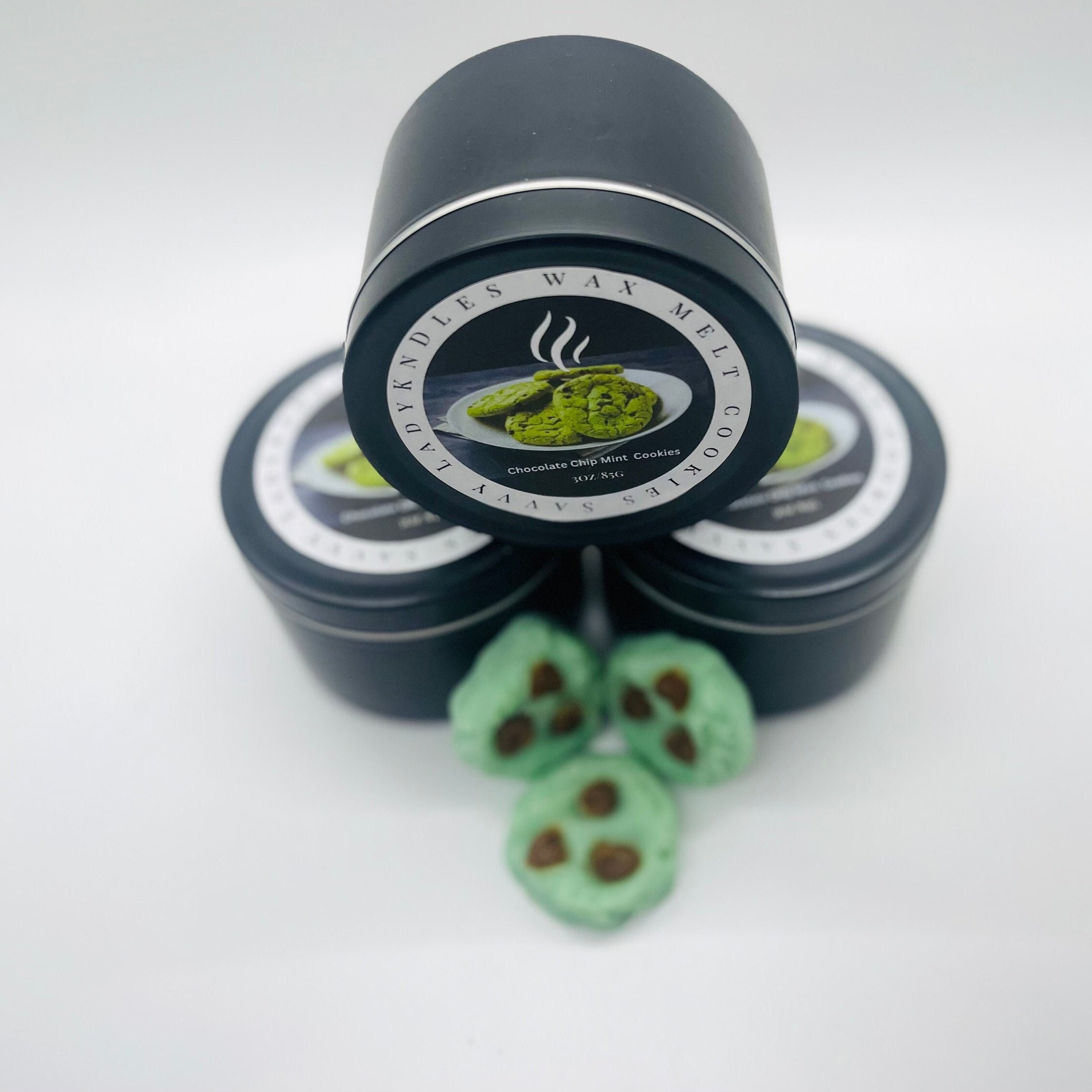 Wax Melts For Warmer Mint Chocolate Chip Wax Melt Cookies. This listing is for one 8 oz tin of mini Mint Chocolate Chip Wax Melt Cookies. Whether you’re looking to freshen up your kitchen, bedroom, or sitting area, our cookie wax melts are sure to please. Indulge in the mouth-watering aroma of freshly baked chocolate mint chip cookies with our hand poured soy wax melt cookies. Made with the finest products, our bakery wax melts are perfect for adding the smell of sweet mint chocolate aroma to any room in your home.