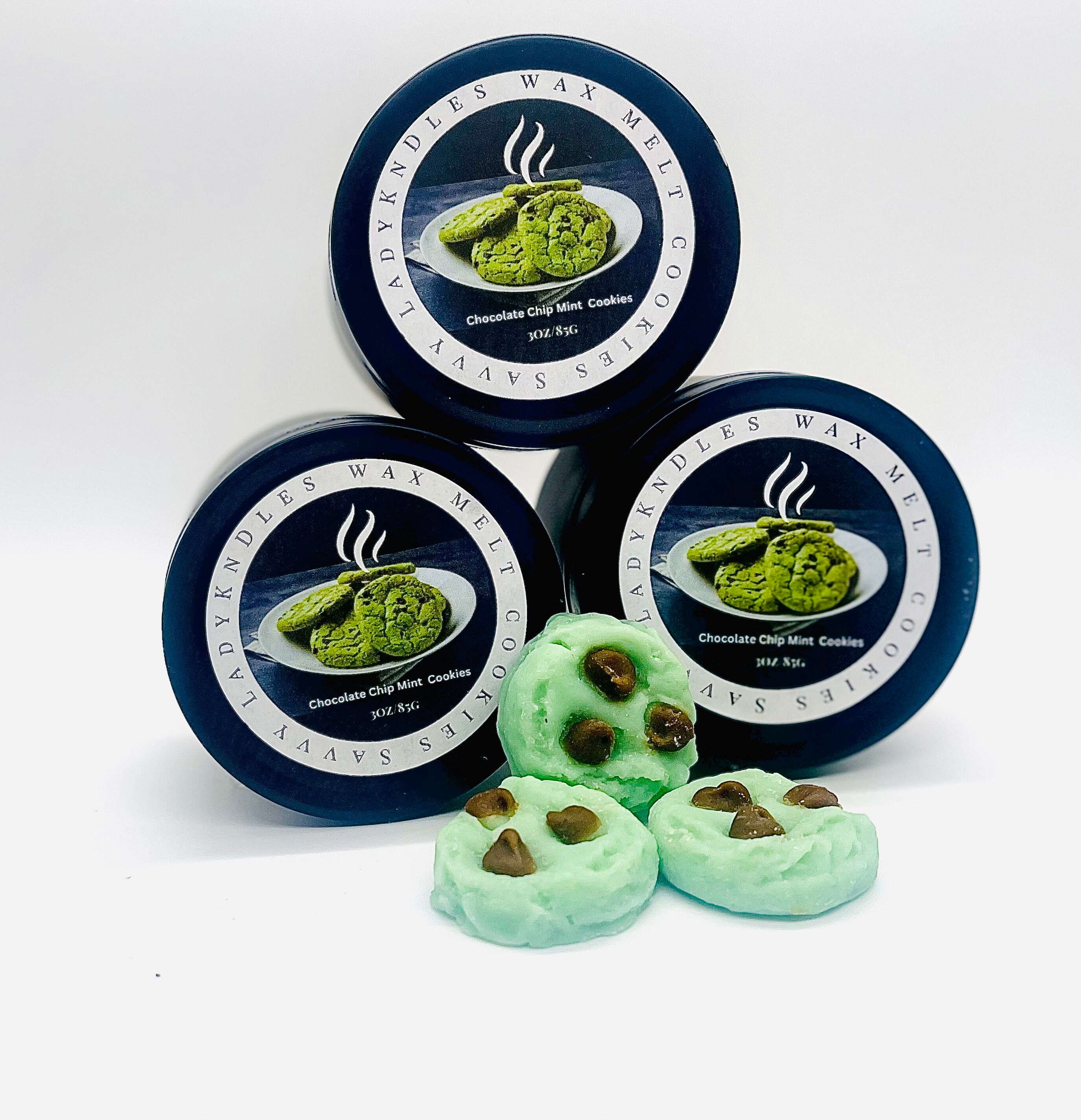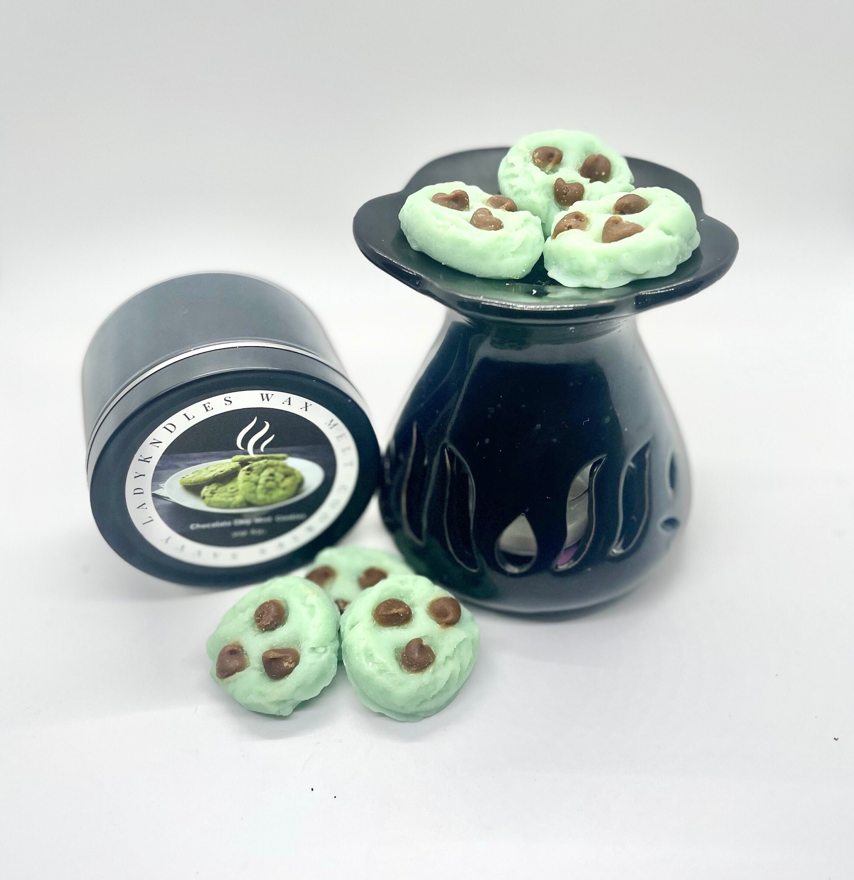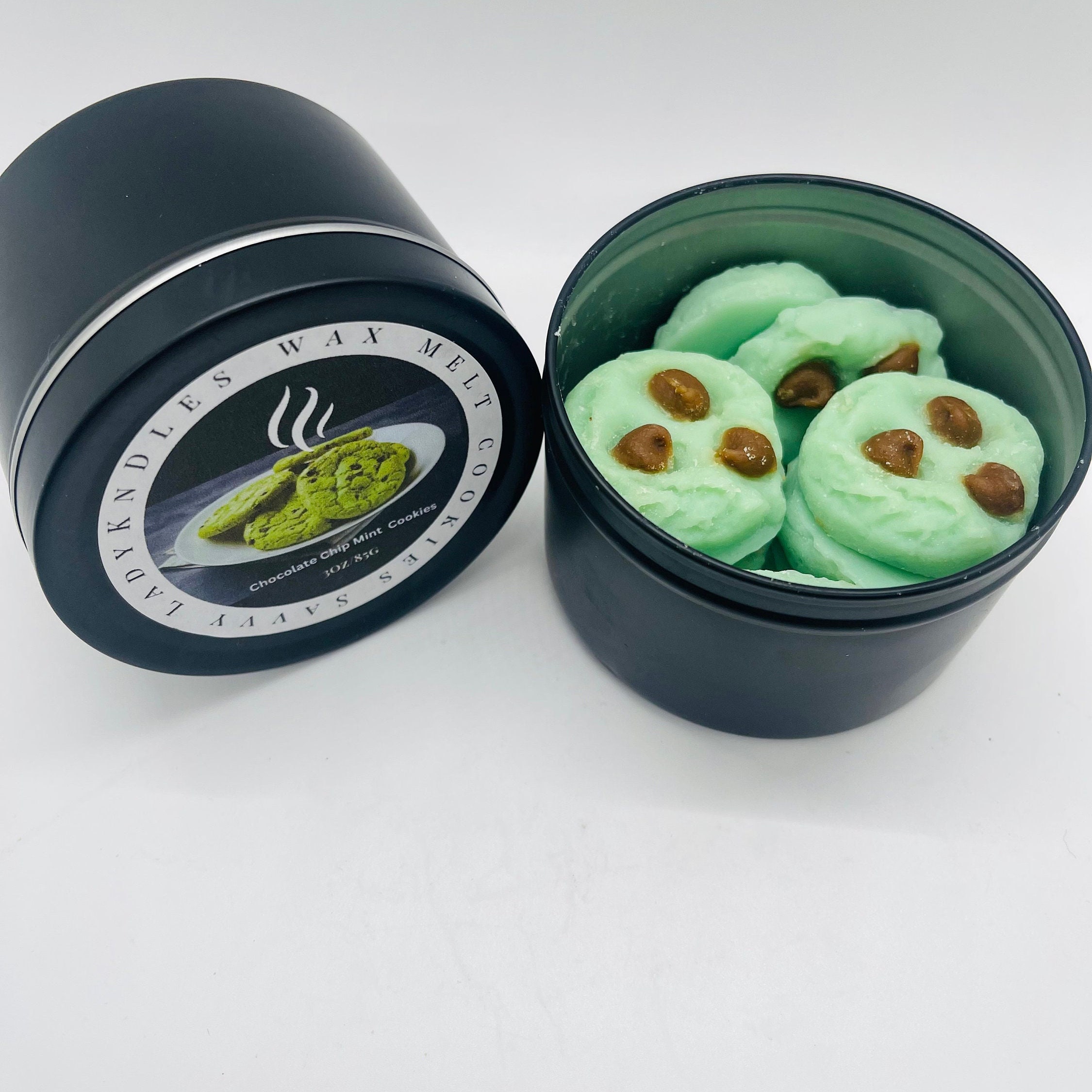 Wax Melts For Warmer Mint Chocolate Chip Wax Melt Cookies. This listing is for one 8 oz tin of mini Mint Chocolate Chip Wax Melt Cookies. Whether you’re looking to freshen up your kitchen, bedroom, or sitting area, our cookie wax melts are sure to please. Indulge in the mouth-watering aroma of freshly baked chocolate mint chip cookies with our hand poured soy wax melt cookies. Made with the finest products, our bakery wax melts are perfect for adding the smell of sweet mint chocolate aroma to any room in your home.